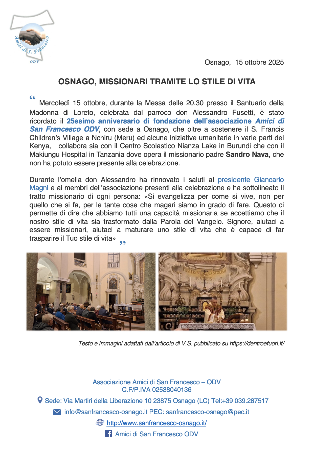 Qui sotto potete trovare la nostra Newsletter 2025, con tutte le novità dal villaggio St. Francis e dall’Associazione!