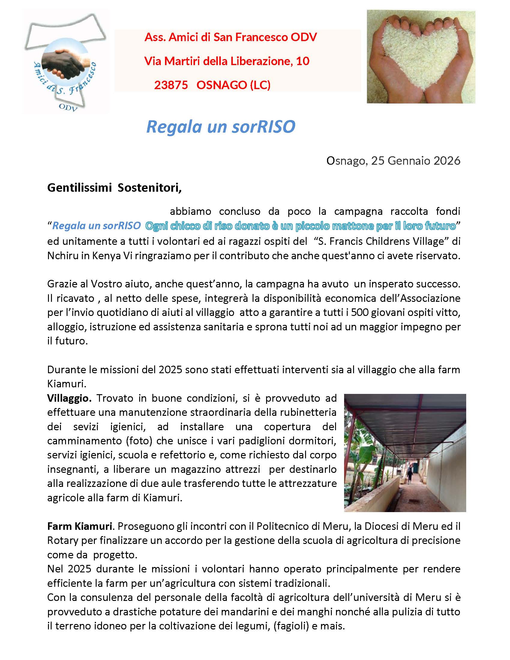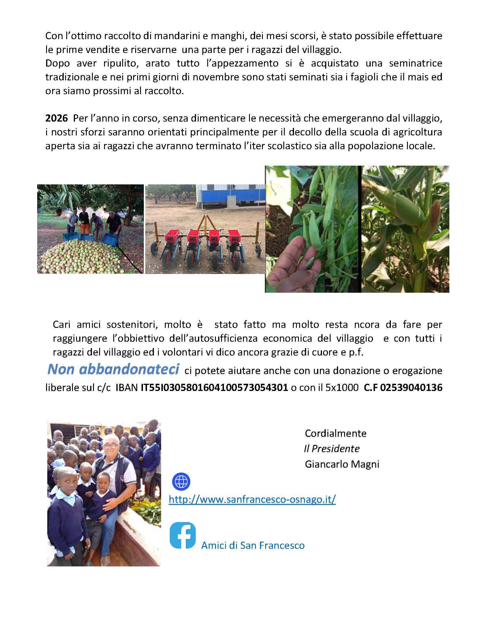 Ecco una lettera del nostro Presidente, con alcuni aggiornamenti dal Villaggio St. Francis e sui progetti in corso. Le finanze dell’Associazione dipendono esclusivamente dal vostro sostegno economico e dalle donazioni. Tutti i progetti in corso contano su di voi e sui nostri instancabili volontari!